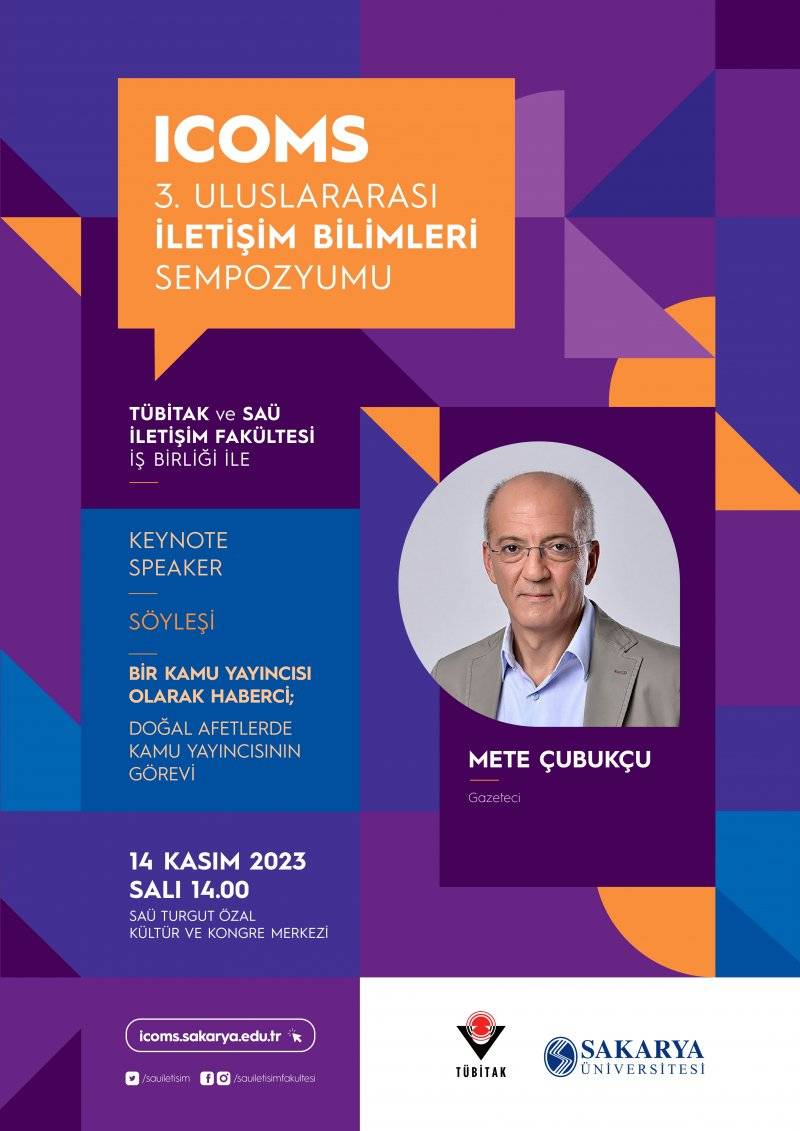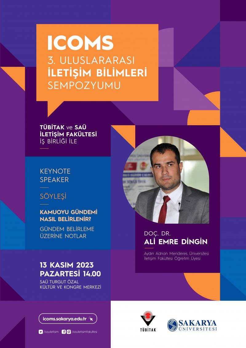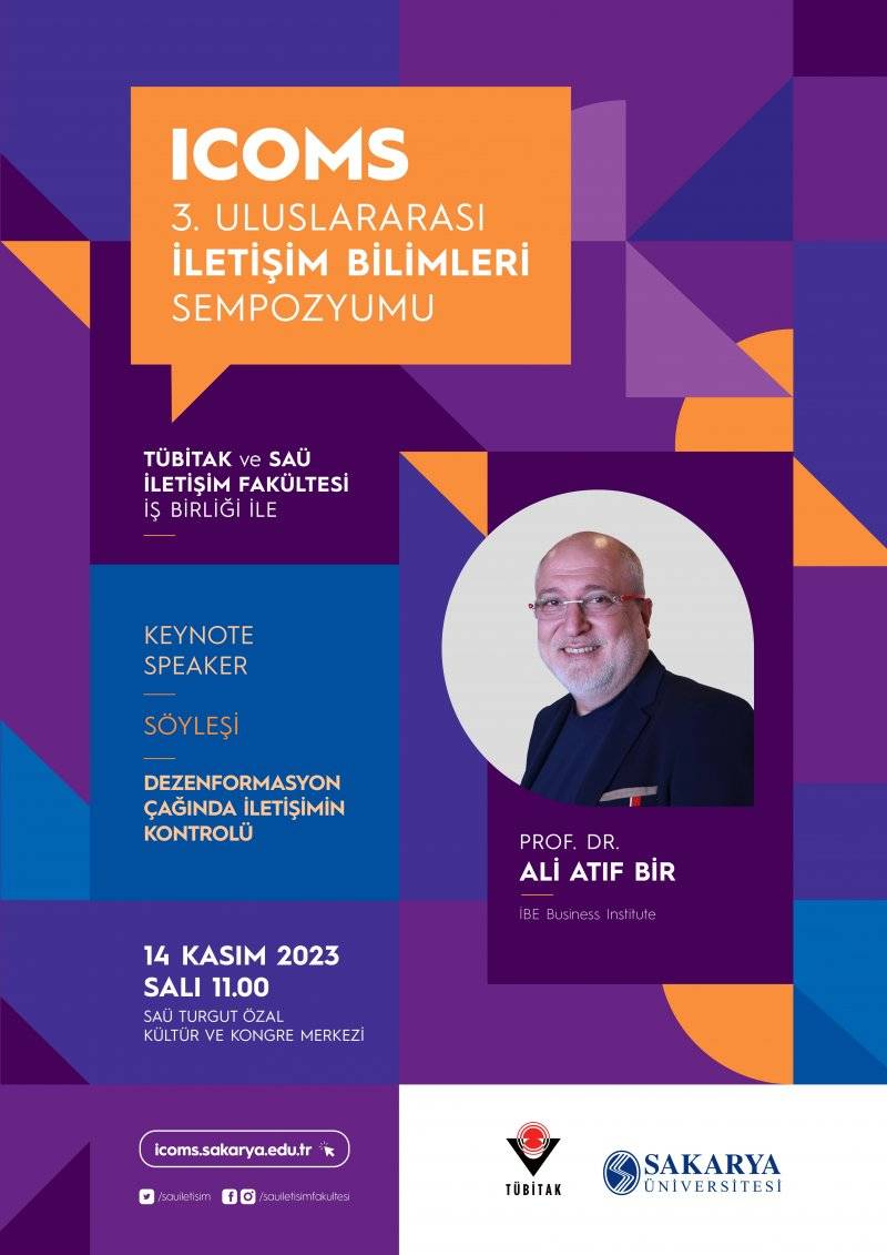 SAÜ ve TÜBİTAK iş birliğiyle düzenlenecek olan 3. Uluslararası İletişim Bilimleri Sempozyumu, 13-15 Kasım 2023 tarihleri arasında gerçekleşecektir. Ana teması ‘Doğal Afetler ve Dezenformasyon’ olan sempozyumun onur konuğu Cumhurbaşkanlığı İletişim Başkanı Prof. Dr. Fahrettin ALTUN olacaktır. Üç gün boyunca sürecek organizasyonda, bilim insanlarının hazırladığı 90 bildiri katılımcılara sunulacak ve alanında başarılı isimler panel ve söyleşilere katılacaktır. Sempozyum, medya ortamlarında sıklıkla karşılaşılan dezenformasyonla mücadelede yeni bakış açıları geliştirilmesine önemli katkılar sağlayacaktır.