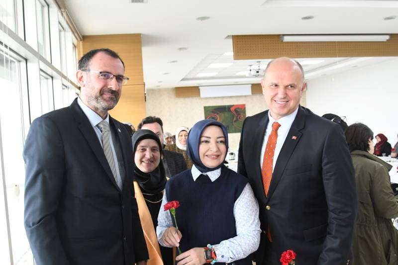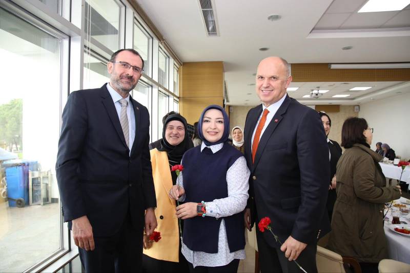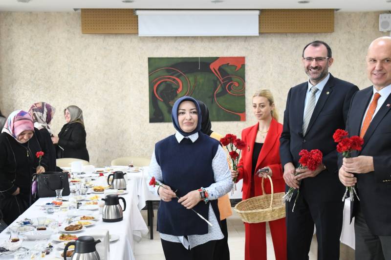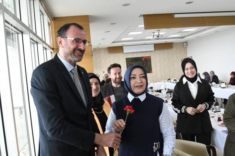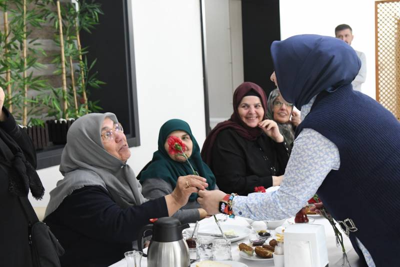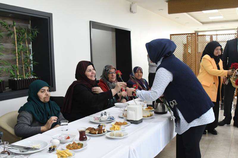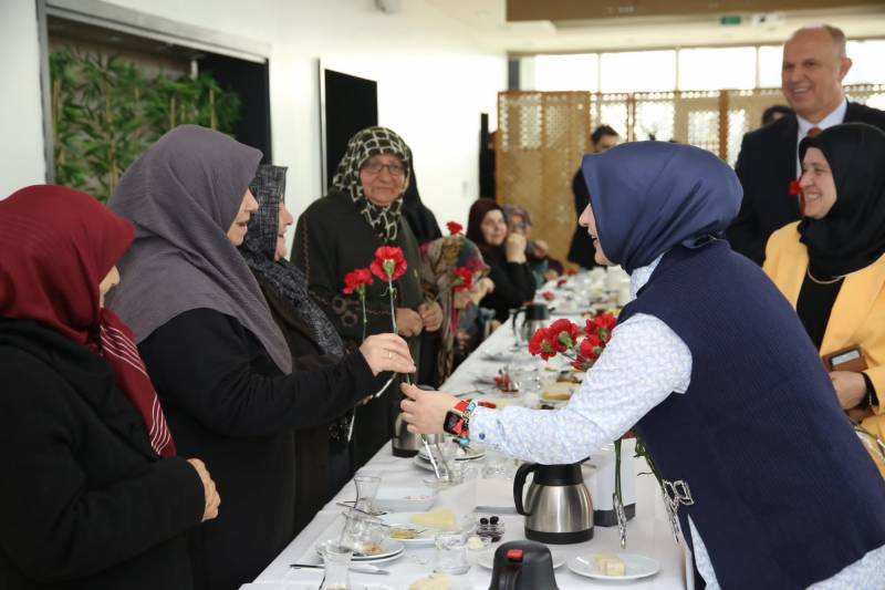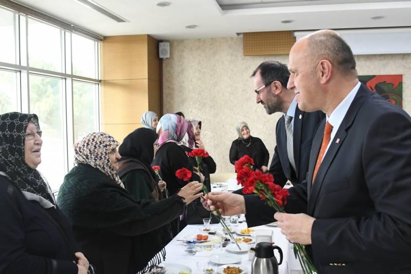 Kahvaltı programı, 8 Mart Dünya Kadınlar günü münasebetiyle, şehit annelerine çiçek takdim edilmesinin ardından sona erdi.