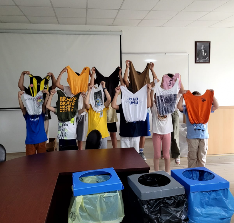 Etkinlikte, çocuklar eski tişörtlerden çanta yapma fırsatı buldular. Bu uygulamalı çalışma, kullanılmış giysilerin yeniden değerlendirilmesi yoluyla çevre bilinci ve sürdürülebilirlik konularında farkındalık oluşturmayı hedefledi.
