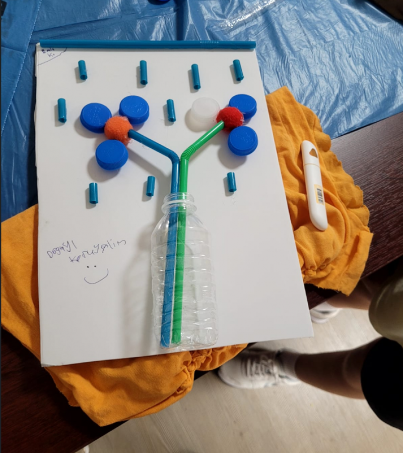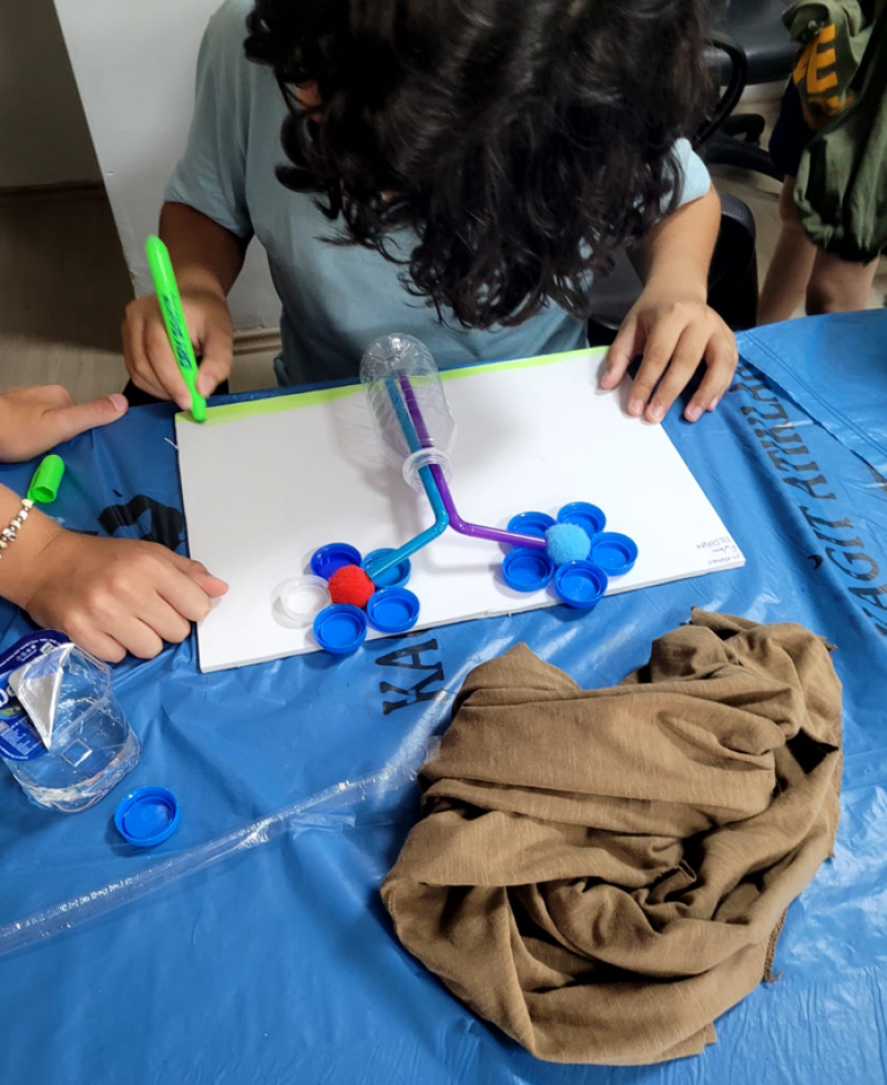 Ayrıca, plastik pet şişeler kullanılarak yapılan resim çalışmaları etkinliğe renk kattı. Çocuklar, atık malzemeleri sanatsal bir araç olarak kullanarak hem yaratıcı yeteneklerini sergilediler hem de keyifli bir deneyim yaşadılar.