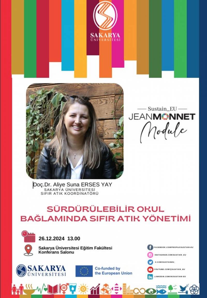 Sakarya Üniversitesi’nin de paydaşı olduğu Sustain_EU projesi, SAÜ Topluma Katkı ve Sürdürülebilirlik Koordinatörlüğü iş birliğiyle 26 Aralık 2024 Perşembe günü ilk seminerini başarıyla gerçekleştirdi.