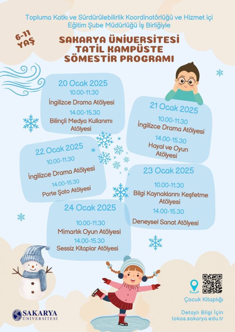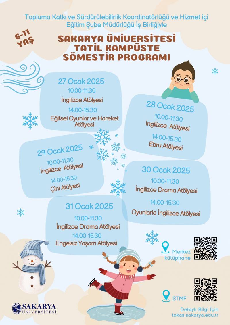 Sakarya Üniversitesi’nde sömestir tatiline renk katan “Tatil Kampüste” etkinlikleri tüm hızıyla devam ediyor. Sakarya Üniversitesi Topluma Katkı ve Sürdürülebilirlik Koordinatörlüğü ile Hizmet İçi Eğitim Şube Müdürlüğü iş birliğiyle düzenlenen etkinlikler, 20 Ocak'ta başladı ve 31 Ocak'a kadar sürecek.