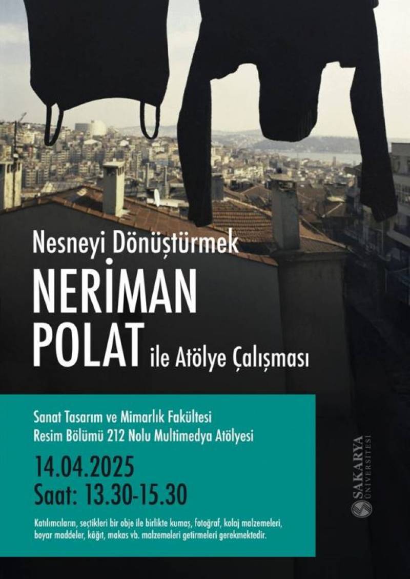 Sakarya Üniversitesi Sanat, Tasarım ve Mimarlık Fakültesi Resim Bölümü, sanatçı Neriman Polat yürütücülüğünde “Nesneyi Dönüştürmek” başlıklı bir atölye çalışmasına ev sahipliği yaptı. Etkinlikte katılımcılar, seçilmiş bir objeyi merkez alarak kumaş, kolaj malzemeleri, fotoğraf, kâğıt ve boyar maddeler gibi çeşitli araçlarla yeniden işlev kazandırılmış özgün eserler üretti.