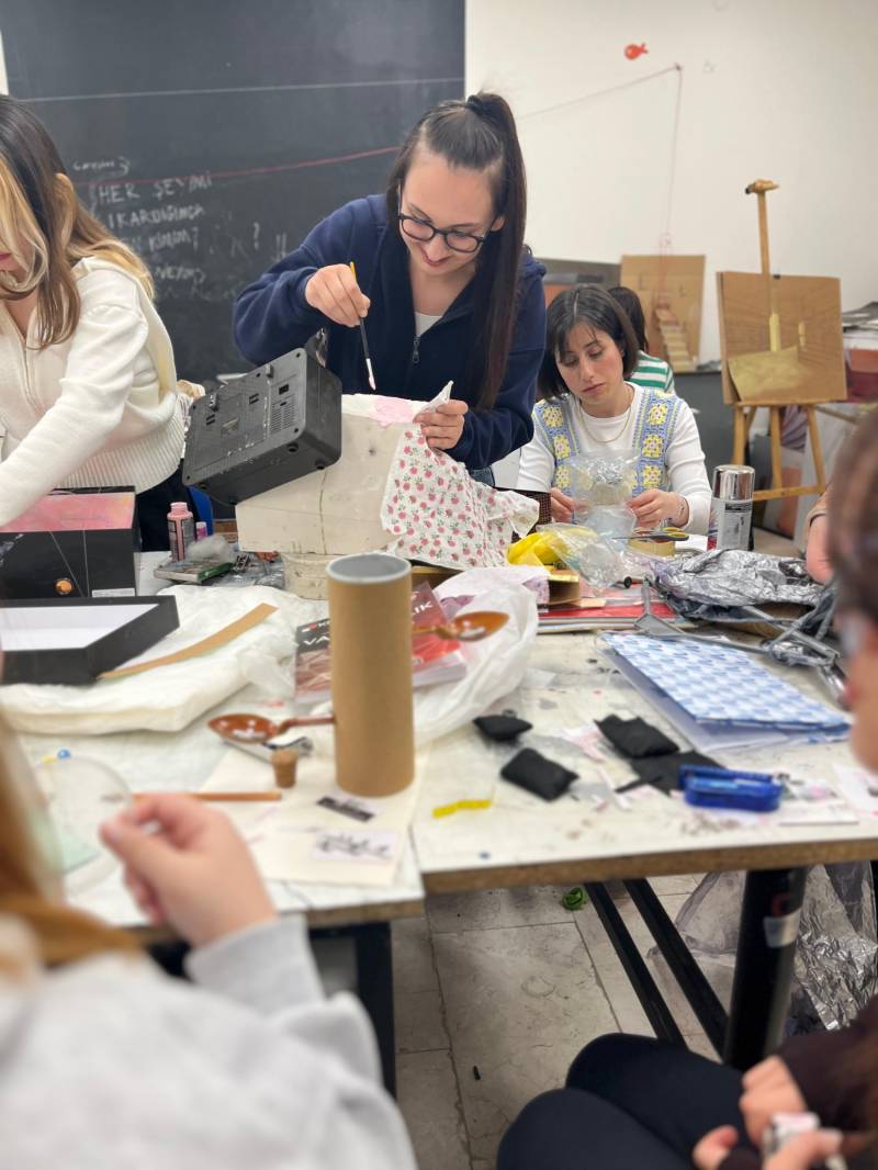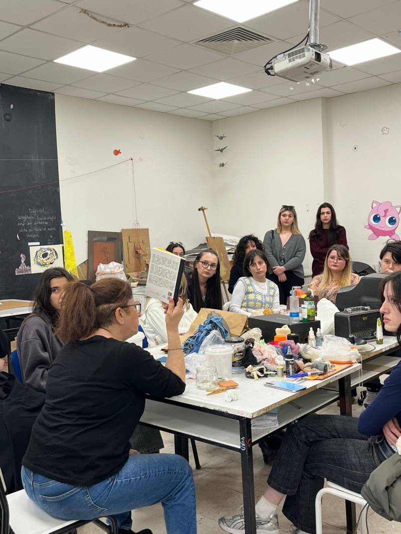 Bu süreç, gündelik hayatta işlevini yitirmiş ya da artık kullanılmayan nesnelerin sanatsal bir bakışla nasıl dönüştürülebileceğine odaklandı. Sanatçı Neriman Polat, atölye boyunca katılımcılarla birebir ilgilenerek dönüşüm, temsil ve anlam katmanları üzerine düşünsel bir zemin oluşturdu. Etkinlik, öğrencilerin hem teknik becerilerini hem de kavramsal yaklaşımlarını geliştirmeye yönelik verimli bir paylaşım ortamı sundu.