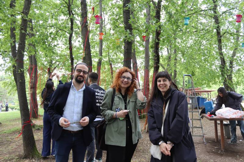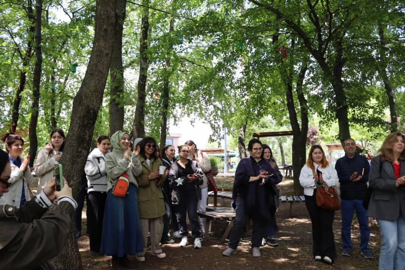 Aynı zamanda, Müzik Eğitmeni Melda KOMAN yürütücülüğünde gerçekleştirilen ses atölyesinde, öğrenciler geri dönüştürülmüş materyallerden oluşturdukları özgün enstrümanlarla doğayla bütünleşen yaratıcı bir ses performansı sundular. Bu performans, ziyaretçilere hem çevreyle uyumlu hem de sanatsal bir deneyim yaşattı.