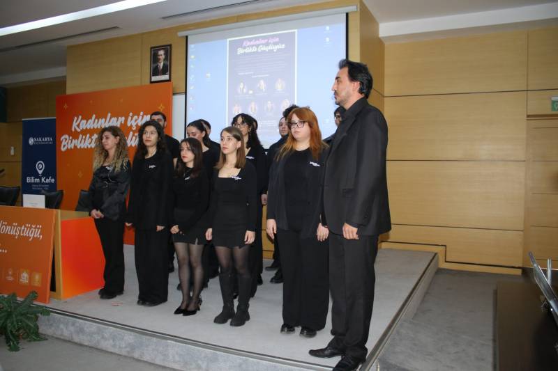 Açılış konuşmasının ardından, akademik başkanlığını Dr. Hacı Bekir Kurşunet’in yürüttüğü Sakarya Üniversitesi Müzik Öğrenci Topluluğu, katılımcıların arasından başlayıp sahneye taşıdıkları çok sesli performansla etkinliğe sanatsal bir boyut kazandırdı. Öğrencilerin “Ünzile”, “Adım Kadın” ve “Kırım Türküsü” eserlerini seslendirdikleri kısa konser, salonda duygusal bir atmosfer yaratarak uzun süre alkışlandı.