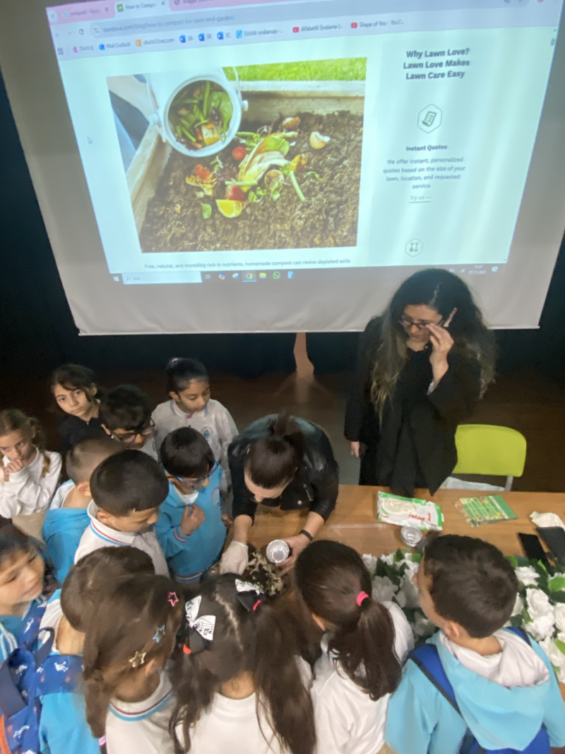 Toplumsal Katkı ve Sürdürülebilirlik Koordinatörlüğü personeli Tuğba Alpagut, etkinlik kapsamında kırmızı Kaliforniya solucanlarıyla organik atıklardan kompost üretimi sürecini tanıttı.