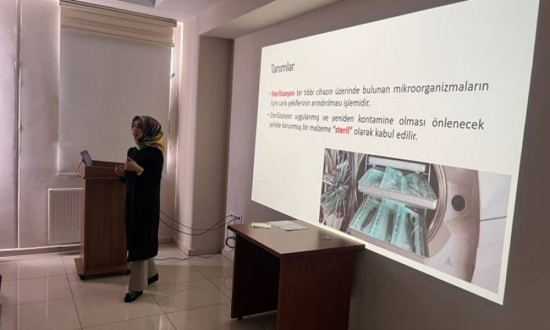 Öğr. Gör. Şeyma TRABZON, kişisel hijyen, el yıkamanın önemi, sterilizasyon ve dezenfeksiyon prensipleri konularını detaylı olarak anlatarak, bu alanda çalışan personelin nelere dikkat etmesi gerektiği hakkında uyarılarda bulundu.